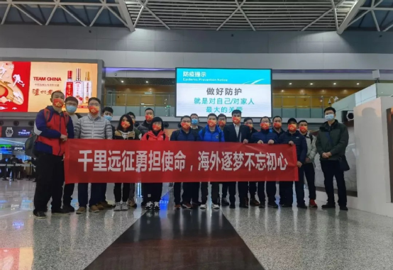 由于項目需要,29所某項目團(tuán)隊在節(jié)日里就整理好行囊,項目組辭別家人、親友和同事,穿上防護(hù)服,經(jīng)歷14個小時不吃不喝的旅途,踏上執(zhí)行任務(wù)的新征程?!扒Ю镞h(yuǎn)征勇?lián)姑?,海外逐夢不忘初心”,他們必將竭盡所能,早日完成項目任務(wù)。