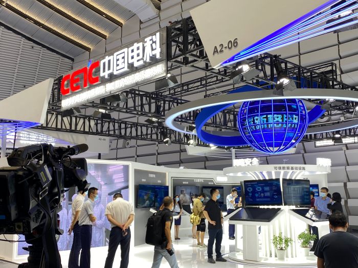 此次展會,中國電科劃分企業(yè)形象主屏、網(wǎng)絡安全、網(wǎng)信體系、電子裝備、產(chǎn)業(yè)基礎五大展示區(qū)進行展示。